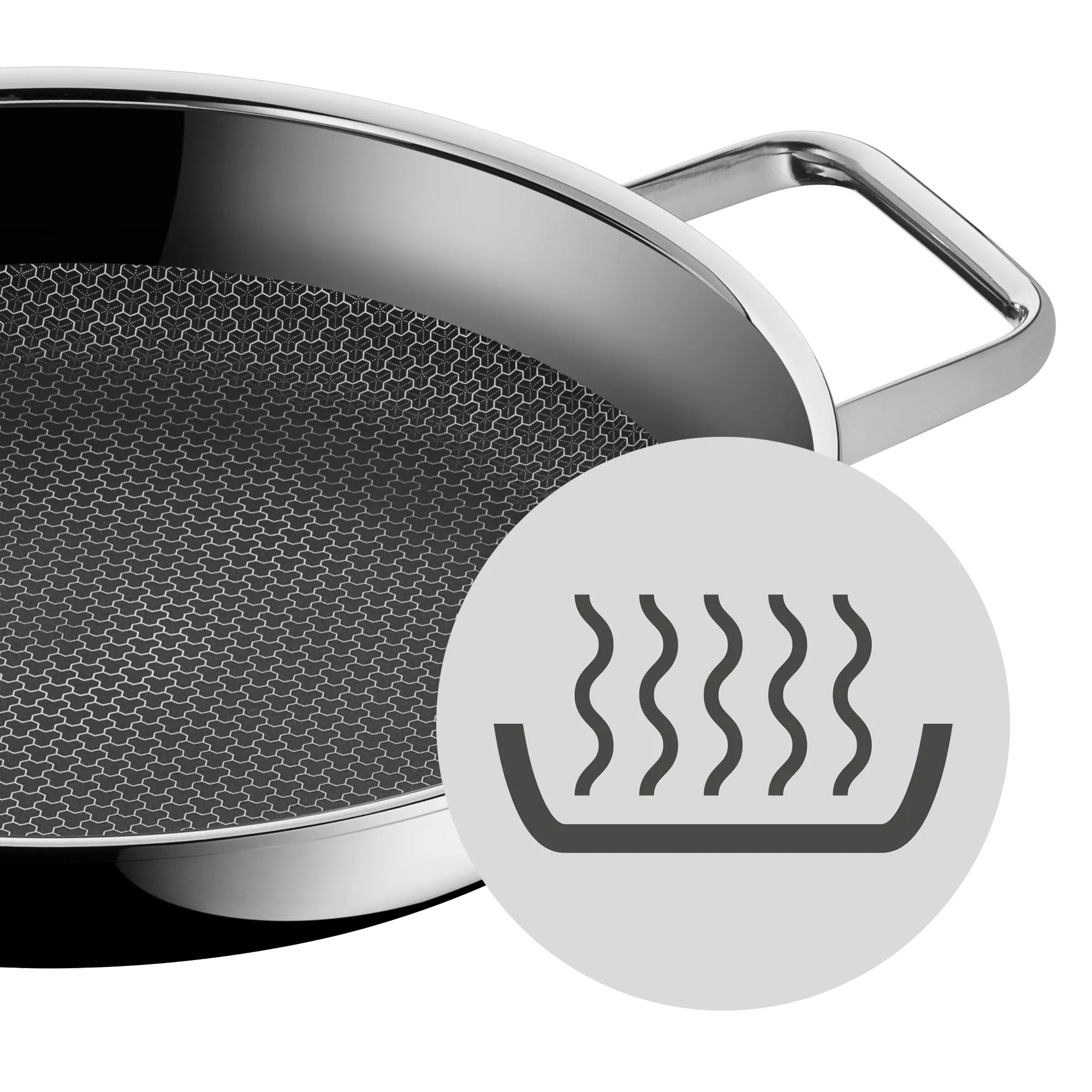 Çok yüksek sıcaklıklarda hızlı kızartma veya hassas malzemeleri çok az yağda pişirme imkanını aynı anda sunan WMF Profi Resist sahanlar, iki güçlü malzemenin en iyi özelliklerini bir araya getirir. Çizilmeye karşı dayanıklı WMF Protection Grid yapısı, bal peteği dokusu ile kusursuz pişirme performansı sunar. Bu sırada, 3 katmanlı sağlam, PFOA içermeyen PermaDur kaplaması ile de uzun ömürlü yapışmazlık ve zahmetsiz temizlik sağlar. Üstelik, alüminyum çekirdeğe ve Cromargan® dış yüzeye sahip çok katmanlı taban yapısı ile de hızlı ve eşit ısınma sağlayarak geleneksel kaplamasız tavaların sunduğu olağanüstü sonuçları garantiler. Ocaktan alınıp güvenle fırına girebilen tasarımın yanı sıra çok ısınmayan kulplar ve geniş dökme kenarlığı gibi kullanışlı özelliklere sahip bu sahan, her seferinde kusursuz sonuçlara ulaşmanızı sağlar. İndüksiyonlu ocaklar dahil her türlü ocak türüne uyumludur.